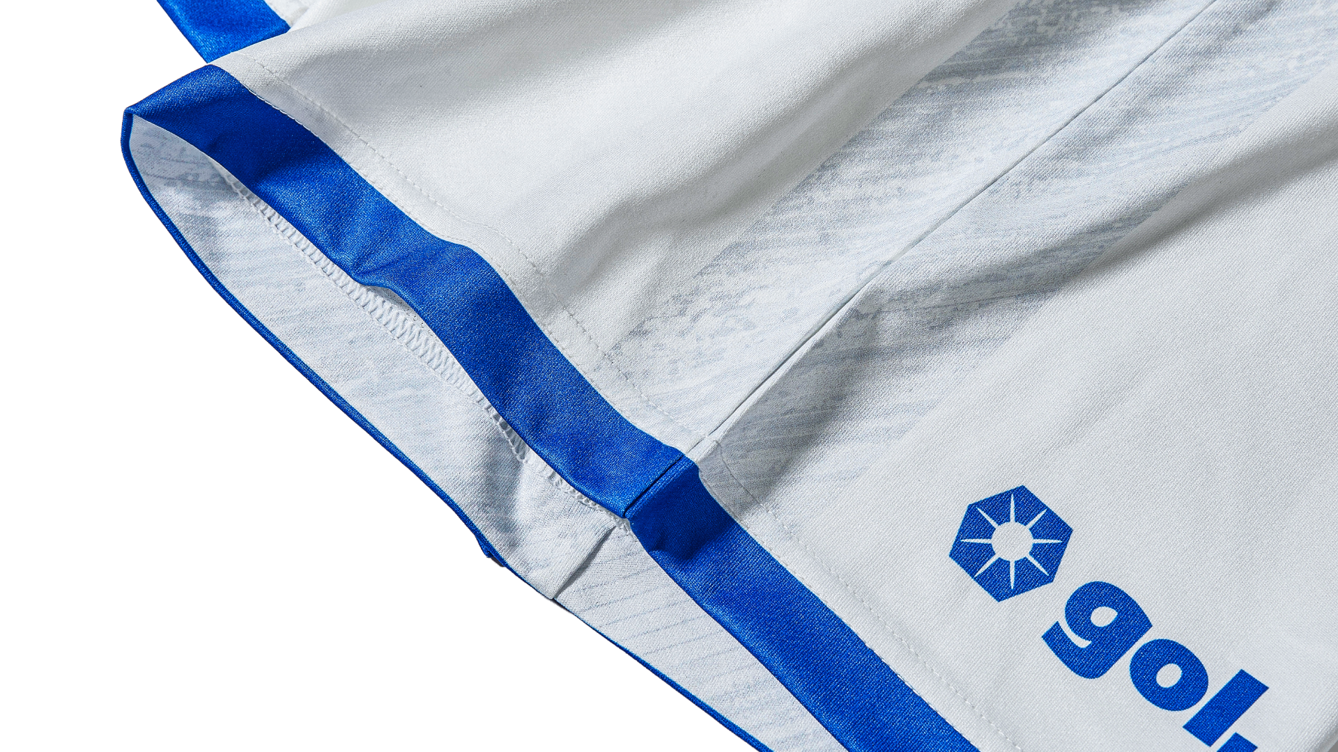 袖と裾はブルーのラインをあしらい統一感を演出し、